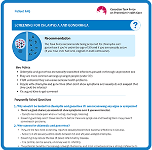 If you are under 30 and sexually active, it’s a good idea to get tested for chlamydia and gonorrhea. They are the most commonly reported bacterial sexually transmitted infections in Canada.